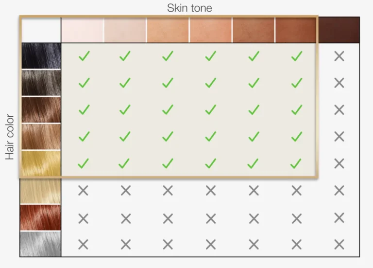 IPL hair removal isn’t for all. It works best with a high contrast in color between hair and skin. Light skin, dark hair? That’s the ideal match for this handset. Check the chart below to save time and see if you’re an ideal fit for IPL.